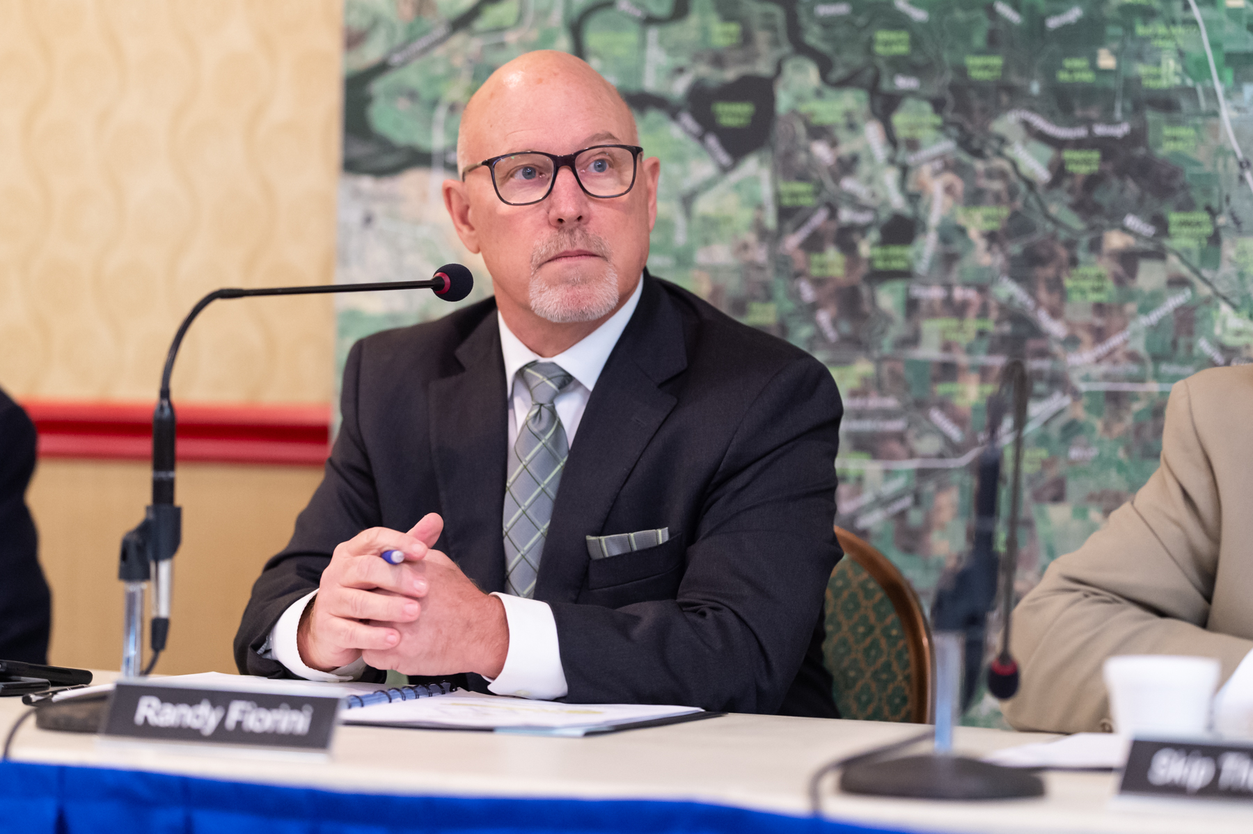 Chair Randy Fiorini listened to testimony offered during the public comment phase of the Delta Stewardship Council’s hearings in response to the Department of Water Resources request for the California WaterFix’s certification of consistency with the Delta Plan in West Sacramento, Calif., Friday, Oct. 27, 2018. (Tony Kukulich/The Press)