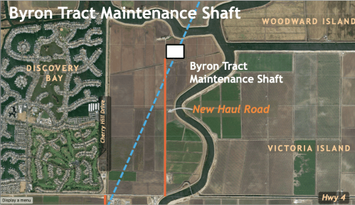 In addition, the tunnel route now comes dangerously close to Discovery Bay homes. A tunneling expert’s witness testimony during the WaterFix hearings raised many issues that could occur tunneling through soft, alluvial soil. The new plan shown in the “Byron Tract Maintenance Shaft” illustration shows the tunnel route dangerously close to Discovery Bay homes.