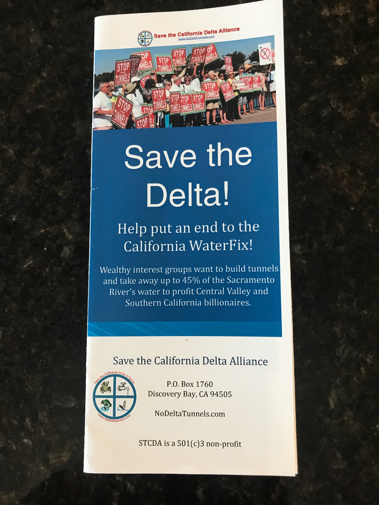 - STCDA Board Member Files Protest against Delta Tunnel intake on behalf of town of Hood on environmental justice grounds